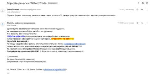 В случае, если лохотронщики из Вилфорд Трейд и Вас кинули, то в таком случае обязательно сообщите про это нам. Сообщите Ваш адрес электронного ящика в форме связи ниже, и с Вами установят контакт.