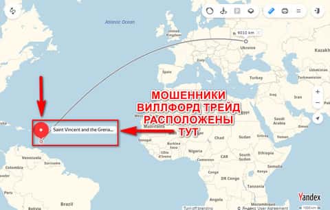 Как уже было описано выше, контора Вилфорд Трейд зарегистрирована в оффшорном государстве Сент Винсент и Гренадины и ведет оттуда свою мошенническую деятельность. А вот собственно и их адрес прописки: First Floor, First St Vincent Bank Ltd Building, James Street, Kingstown, St. Vincent and the Grenadine.