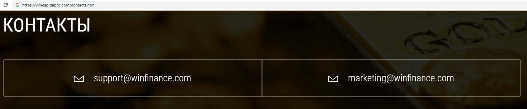 Лохотронщики WinFinance на своем официальном интернет-ресурсе указывают два адреса электронной почты, а именно:
