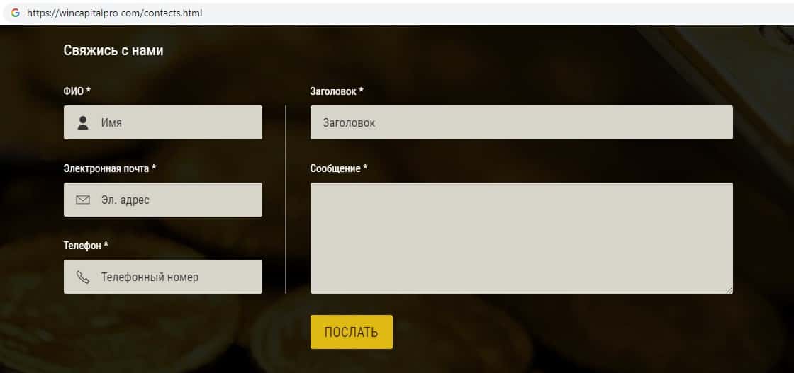 wincapitalpro com - официальный онлайн-ресурс лохотрона Win Finance