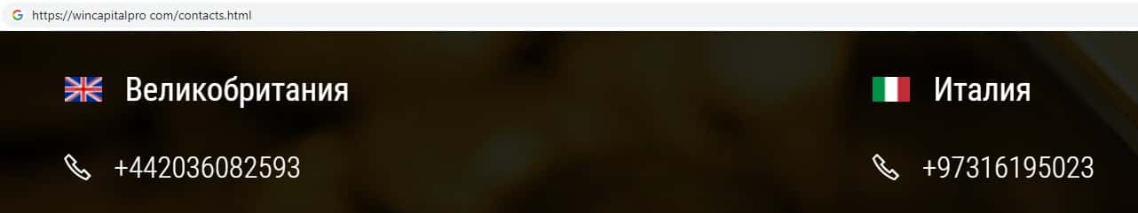 Мошенники Вин Капитал Про на своем дырявом сайте указали два номера контактного телефона, с которых навязчиво названивают потенциальным жертвам:
