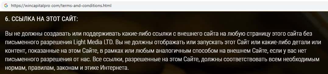 Скам-брокер Вин Капитал Про на своем официальном сайте размещает ссылки, за содержание которых скам-организация ответственности не несет.