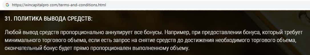 В качестве приманки скам-брокер Вин Капитал Про обещает начисление бонусных денежных средств на торговый счет, которые вывести потом будет невозможно.