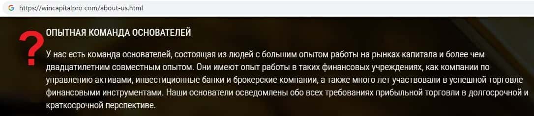 - Информация о руководстве Вин Капитал Про отсутствует