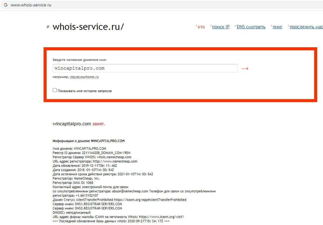 Сервис whois-service ru не может найти данные о владельце домена сайта мошеннической организации Вин Капитал Про, доверять сайту данной скам-конторы нельзя.