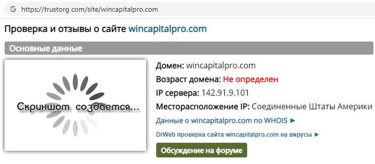 - Информация о возрасте домена скам-конторы Вин Капитал Про