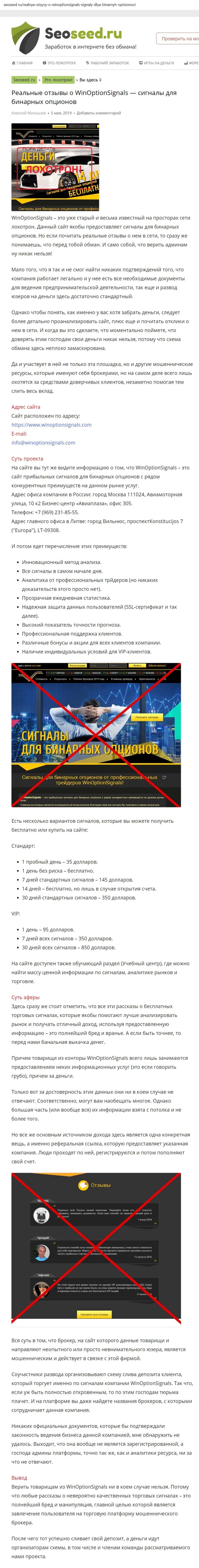 Обзорные статьи, разоблачающие деятельность брокера Вин Опционс Сигналс
