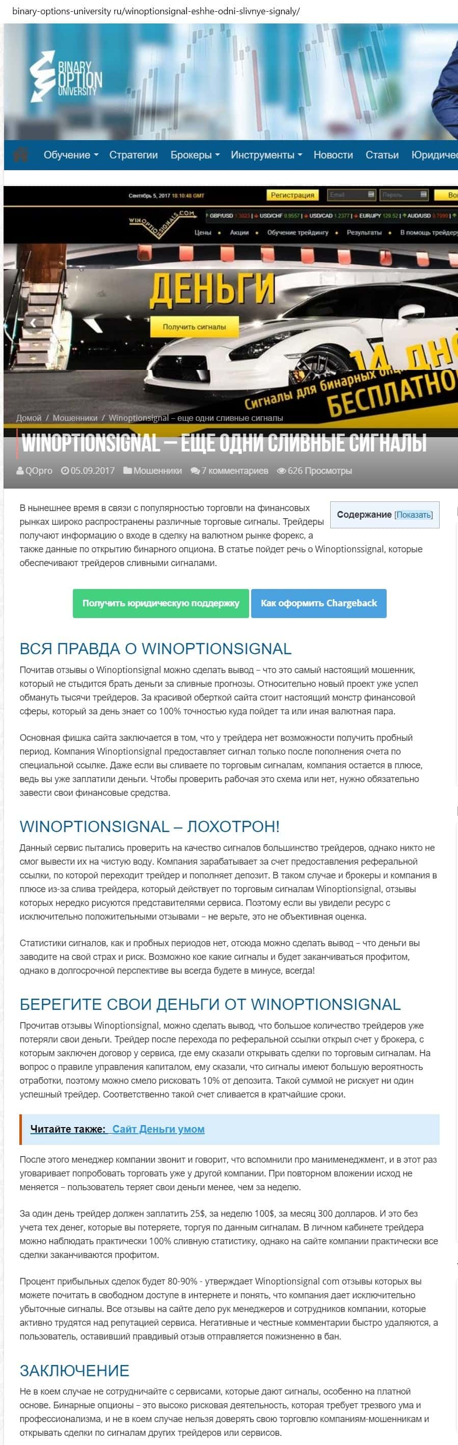 - Обзорные статьи, разоблачающие деятельность брокера Вин Опционс Сигналс