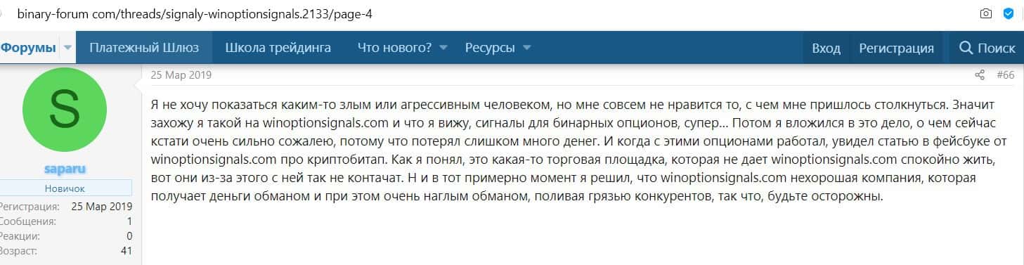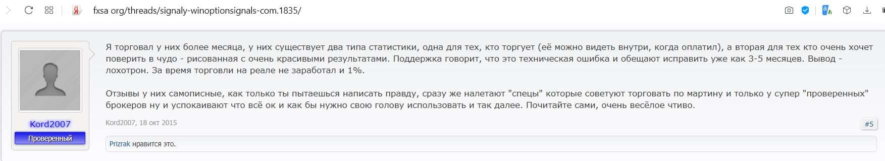 Люди не верят компании WinOptionSignals и считают лохотроном