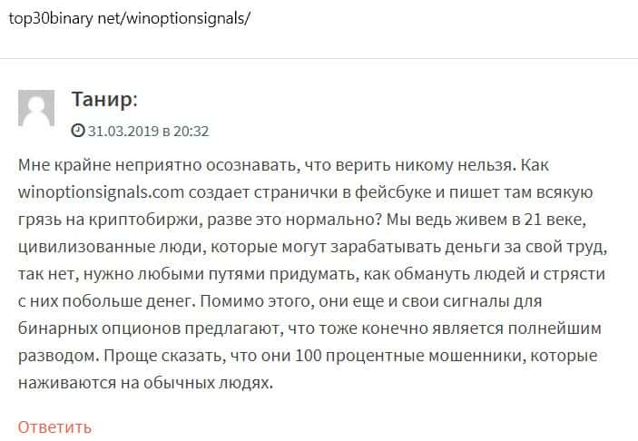 - Отзывы от обманутых жуликами клиентов Вин Опционс Сигналс