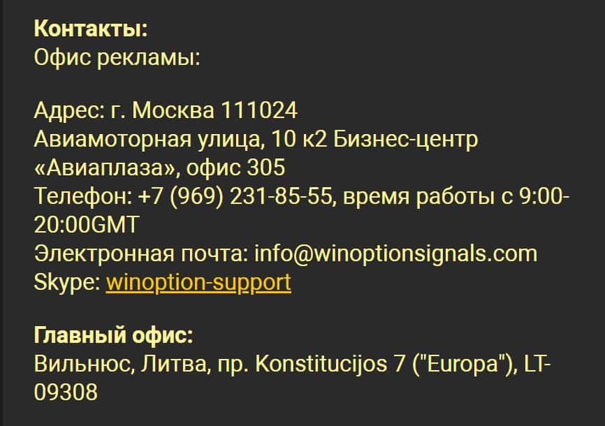 Махинаторы, создавшие проект Вин Опционс Сигналс, зарегистрировали его в Литве, чтобы было проще уходить от налогов, что позволяют их финансовые регуляторы.
