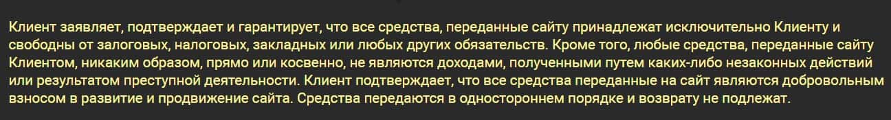 Контора Вин Опционс Сигналс утверждает в своем договоре, что средства клиента являются добровольным взносом в развитие их шулерского сайта и возврату не подлежат.