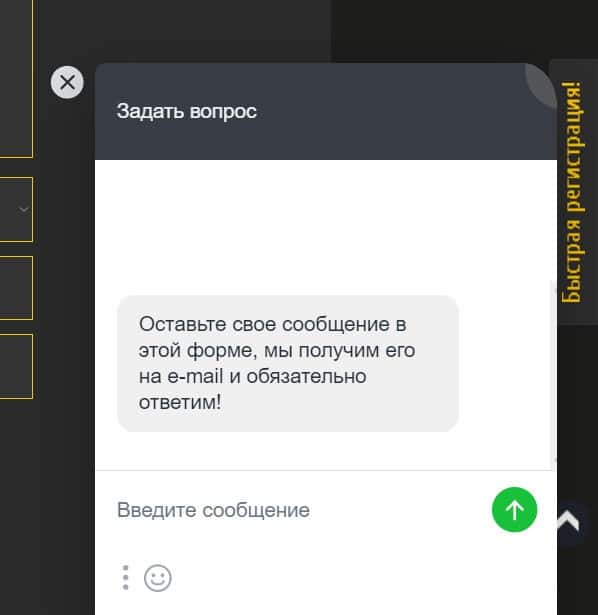 Помимо этого, в углу сайта вы можете найти окно он-лайн чата с поддержкой. Но это всего лишь имитация чата, в реальности это такая же форма для сбора данных пользователя.