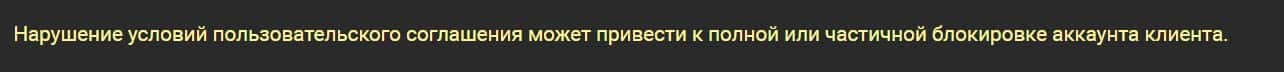 Ниже вы можете прочитать, что при нарушении правил настоящего договора компания Вин Опционс Сигналс заблокирует аккаунт клиента полностью или частично.
