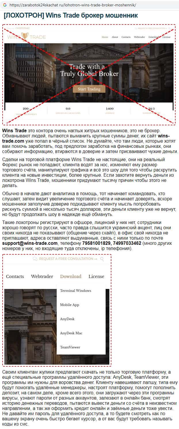 Wins-Trade - обзоры мошенников на других интернет-ресурсах