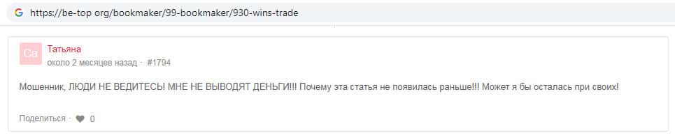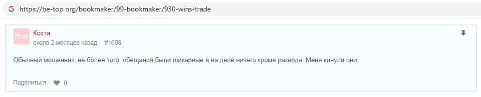 - Wins-Trade - обзоры мошенников на других интернет-ресурсах
