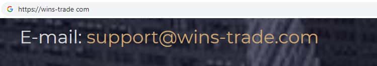 Жулики Wins-Trade на своем официальном интернет-ресурсе указывают адрес электронной почты, а именно:
