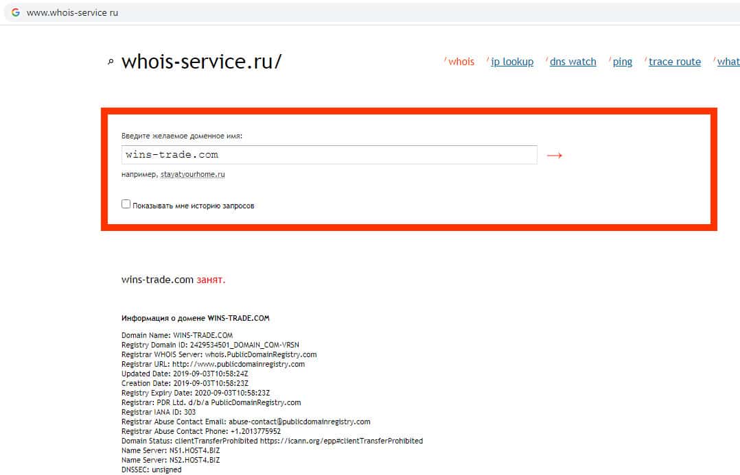 - Проверка срока действия домена Винс Трейд