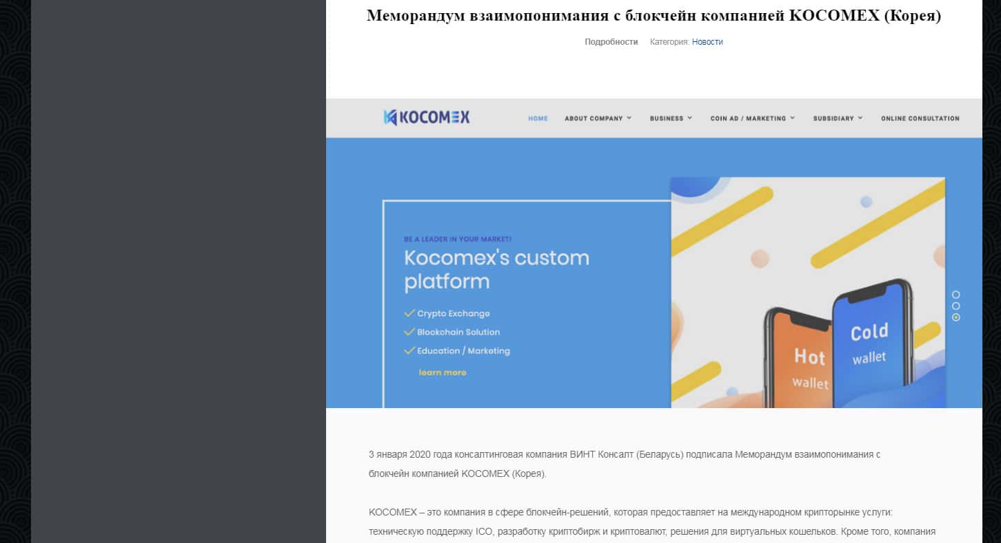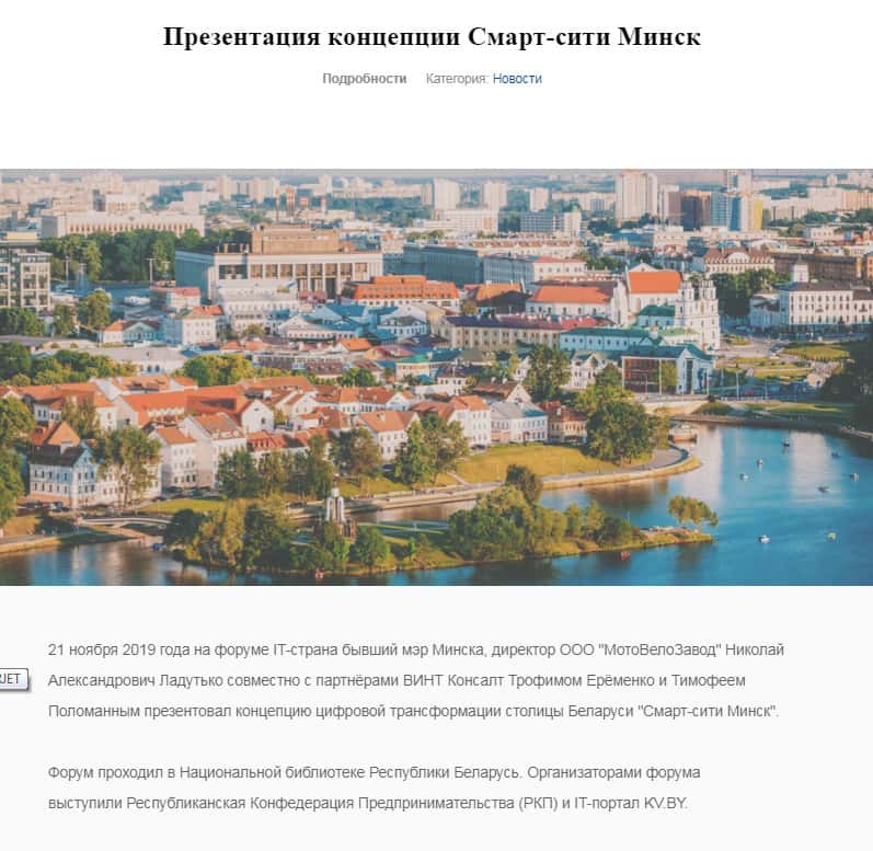 - Презентация концепции Смарт-сити Минск на сайте шарлатанов VintConsult