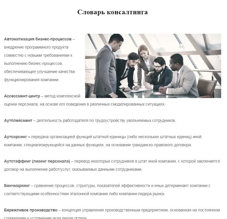 Интересный раздел на сайте конторы - глоссарий, неужели они действительно рассчитывают на то, что к ним обратиться полностью нулевой пользователь за помощью в собственном бизнесе или же хотят просто за счет этой информации пополнить свой сайт водой, что видно на скриншоте ниже.