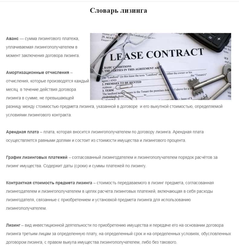 И в завершении раздела глоссария выделен словарь лизинга. Не многие даже продвинутые бизнесмены знают такие формулировки, которые описаны в их словаре. Шарага VintConsult просто хочет показать себя выше и внушить тем самым доверие наивной клиентуре, приходящей к ним за помощью в организации своего бизнеса.