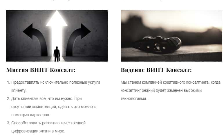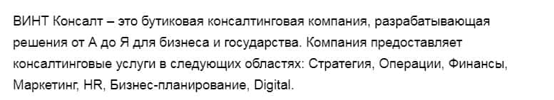 Много пустых слов от очередной шараги ВИНТ Консалт в разделе о нас