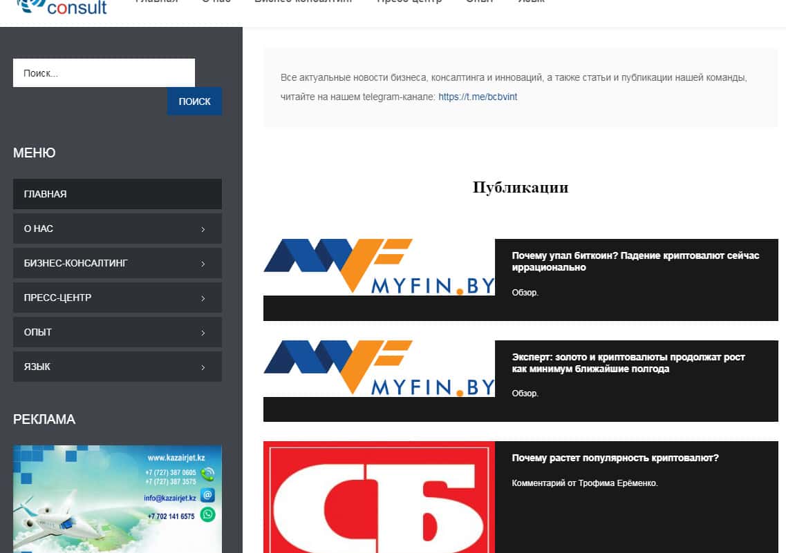 Реклама прямо на сайте консалтинговой компании VintConsult