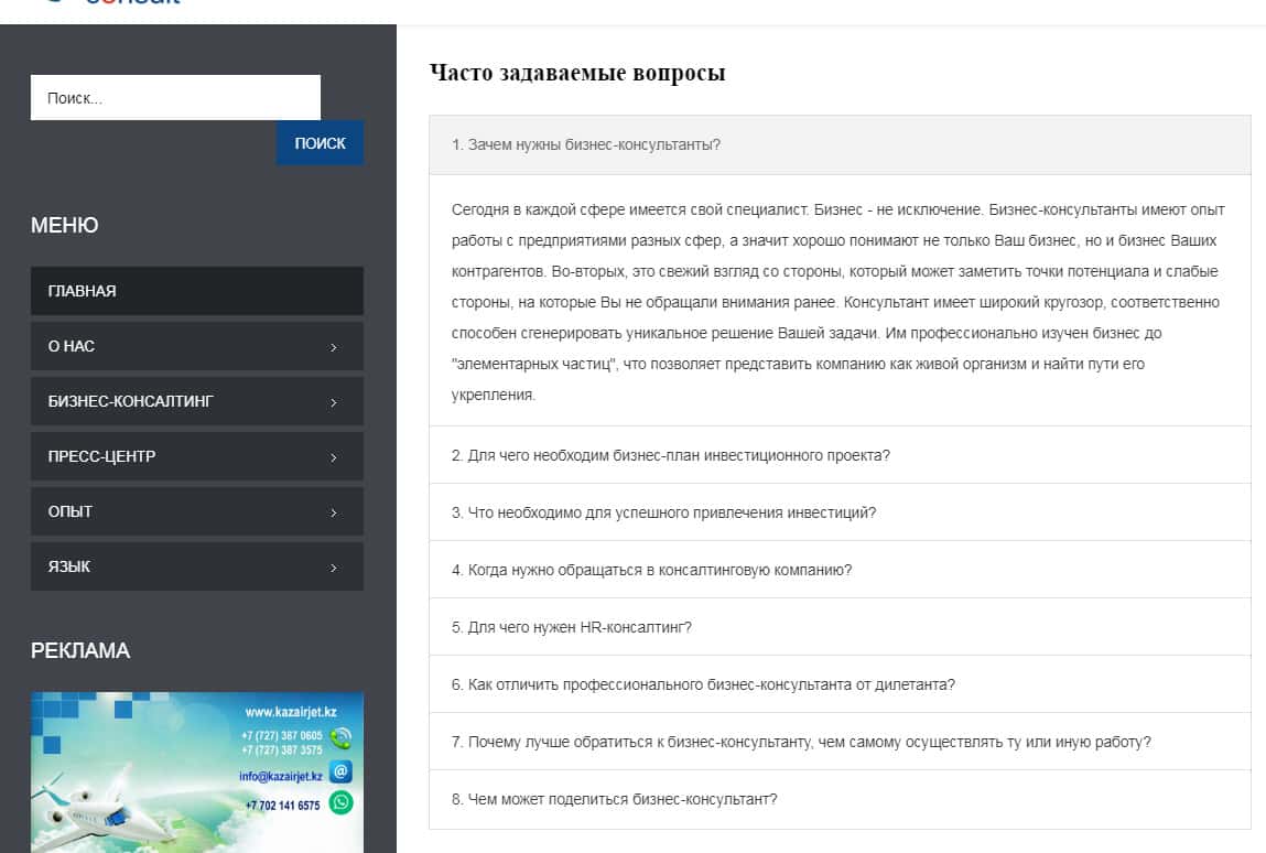 Раздел с вопросами и ответами на сайте аферистов VintConsult