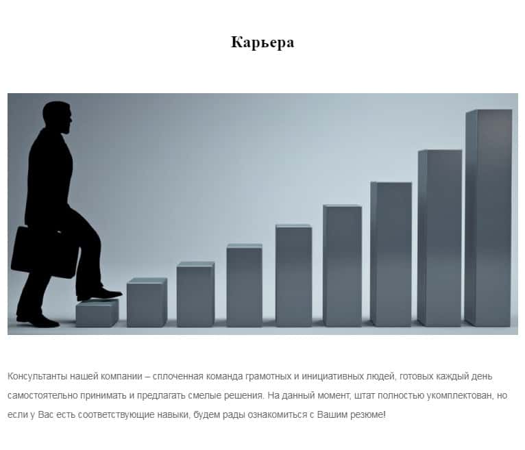 Еще дальше, двигаясь по сайту, можно увидеть, какие красивые слова и пустые обещания дают сотрудники шарашкиной конторы ВИНТ Консалт. Эти наглые мошенники преследуют одну единственную цель - слить побольше денег со счетов наивной клиентуры, пришедшей в их подвальную контору VintConsult за реальным заработком.