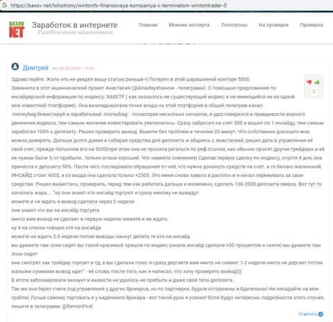 Сайт антиобман ком не рекомендует связываться с мошенниками WintonFX