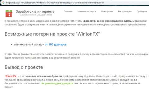 - Отзыв о лохотроне Винтон ФХ с портала baxov net