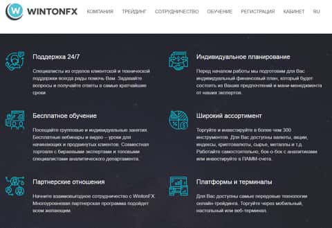 После у лохотрона WintonFX закончилась фантазия, поэтому они размещают еще один раздел с их не подтвержденными преимуществами, именно под предлогом которых аферисты Винтон ФХ будут пытаться развести наивную клиентуру на как можно большее количество денег. На изображении, расположенном ниже, вы можете увидеть данный раздел сайта шулеров WintonFX.