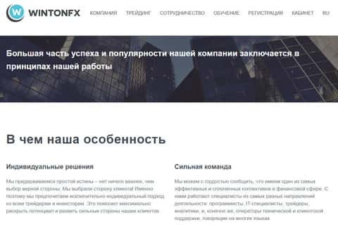 Начинается подвальный сайт у лохотрона WintonFX с довольно типичной и стандартной лапши на уши, в ходе которой мошенники Винтон ФХ пытаются оперативно развести посетителя на регистрацию в своей помойке под предлогом торговли форекс. На изображении, расположенном ниже, вы можете наглядно увидеть начало подвального сайта аферистов WintonFX.