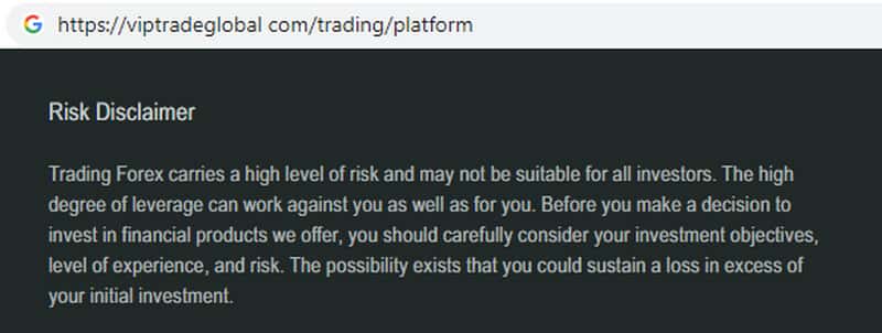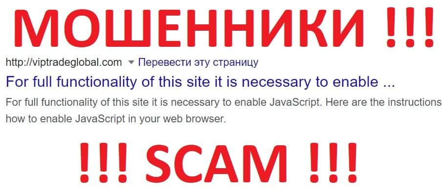 Информация о рисках скам-организации Vip Trade Global