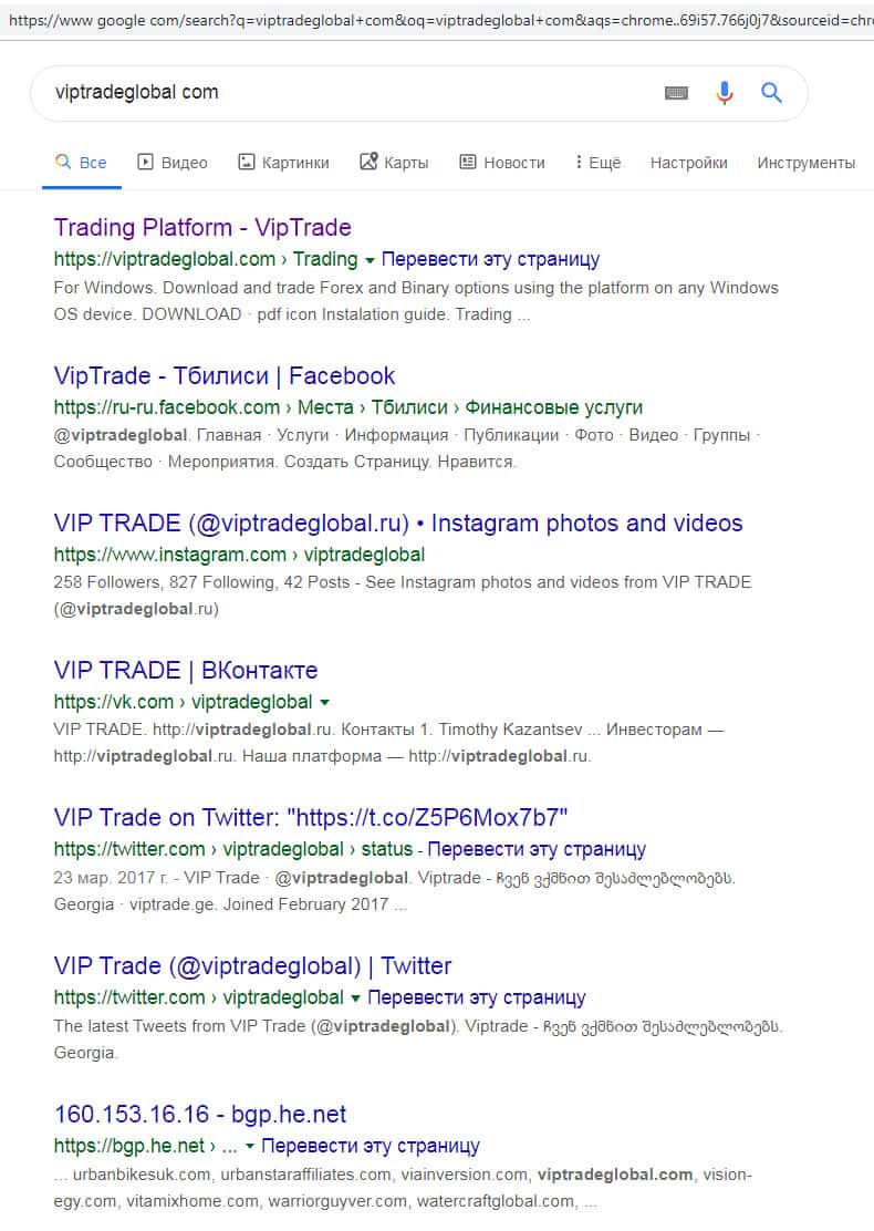 - Торговая платформа мошеннической организации Вип Трейд Глобал