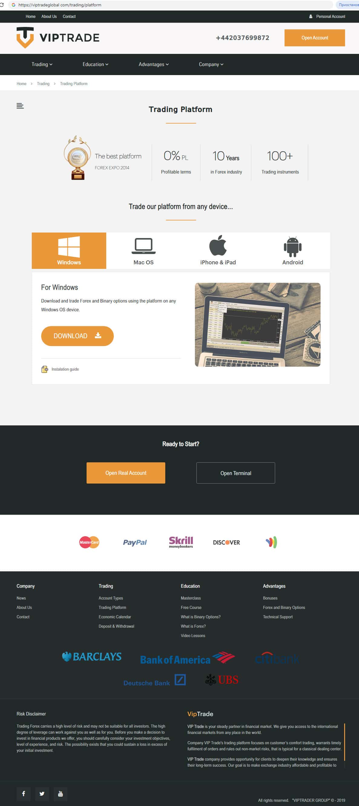 Вообщем компания Вип Трейд Глобал предлагает клиенту тоже самое, что и подобные этой форекс-конторы, а именно возможность торговать с помощью персонального компьютера, а так же специального приложения на смартфоне. Помните, что устанавлявая их приложение на смартфоне есть риск того, что Вип Трейд Глобал будут отслеживать где Вы находитесь в данный момент.
