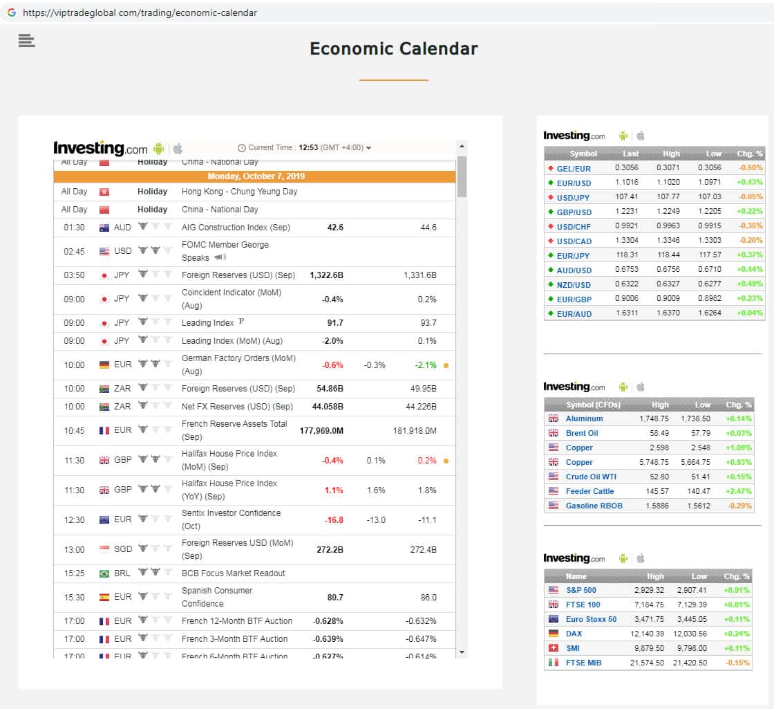 - Экономический календарь скам-компании Vip Trade Global