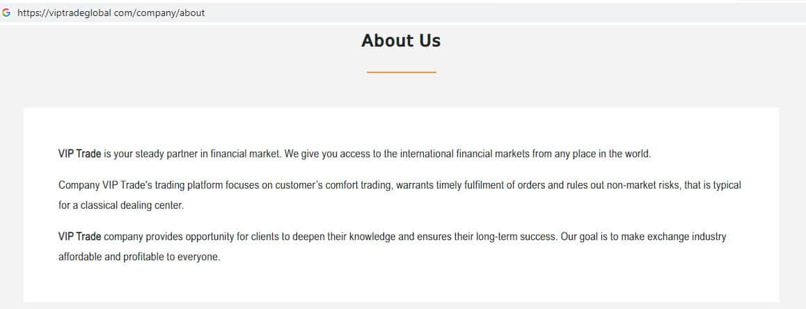 Что пишут о себе представители форекс-конторы Вип Трейд Глобал