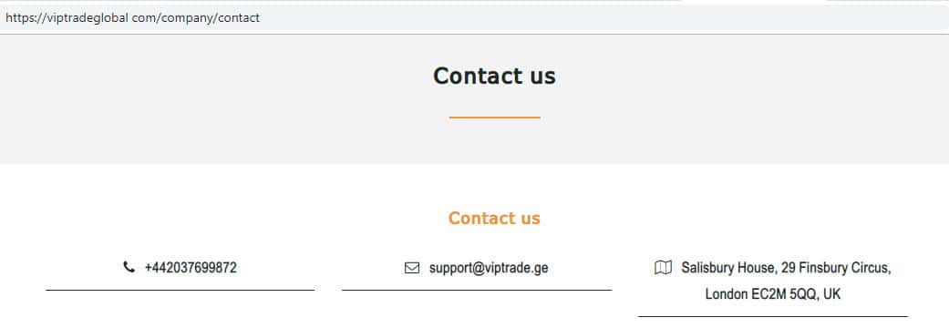 Жулики Вип Трейд Глобал зарегистрированы в Лондоне, Великобритании. Мошенники из Вип Трейд Глобал предоставляют свои кантактные данныые в виде номера контактного телефона, а так же адреса электронной почты, которые указаны ниже: