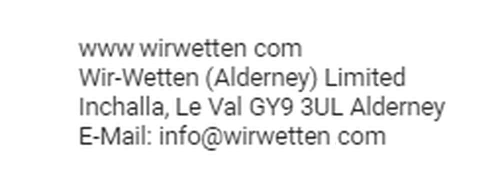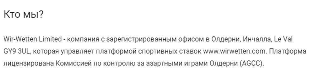 Мошенники Вир Веттен утверждают, что работают под юридическим управлением некой Wir-Wetten Limited, вот только нигде в сети нет данных об этой шараге, это обычная фикция.