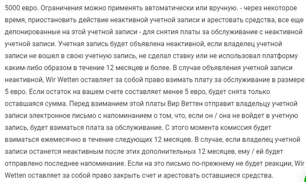 Если на счету игрока остались деньги, а он заблокирован, лоховоды Вир Веттен постепенно списывают остаток, якобы как плату за обслуживание, пока от депозита ничего не останется.
