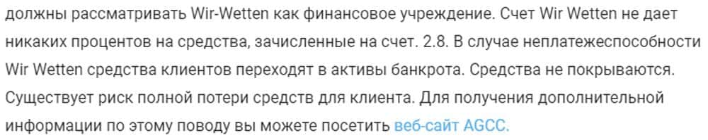 Мошенники Вир Веттен обнаглели настолько, что прямым текстом заявляют: в случае их же банкротства все деньги на счетах становятся собственностью кидал, не возвращаются игрокам.