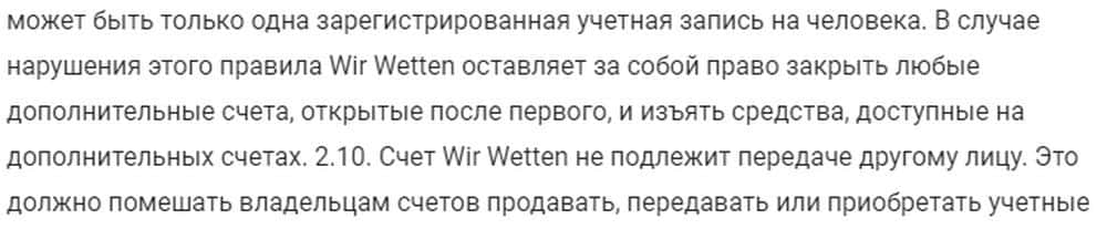 Один из любимых приемов гэмблинг-мошенников - поиск "дублирующих счетов". Жулики WirWetten не исключение. Чтобы не платить игроку, они легко "найдут" такой и заберут деньги.