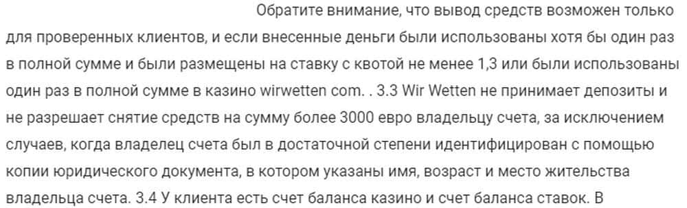 Ведь сразу после регистрации доверчивый игрок автоматически соглашается со всеми пунктами клиентского договора и попадает в ловушки, расставленные аферистами Вир Веттен.