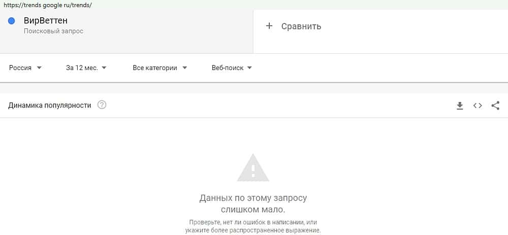 Транслитерация бренда аферистов "ВирВеттен" не интересует завсегдатаев сервиса Гугл. Это ставит крест на вероятной популярности мошенников, мухлюющих со ставками на спорт.