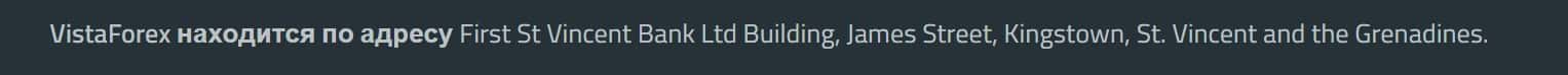 Мошенники Виста Форекс выложили на свой сайт адреса офисов в Англии и на острове Сент-Винсент и Гренадины, где находится их контора.
