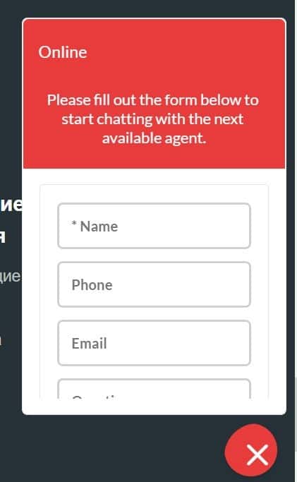 В углу страницы клиент может увидеть окно чата с оператором. Работает оно или нет, сказать трудно.