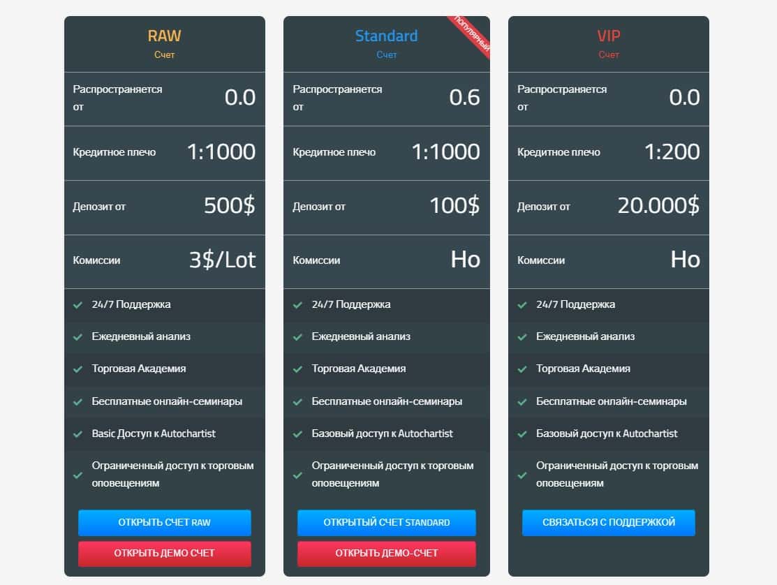Брокерская контора Виста Форекс выложила на своем сайте типы счетов, которые может выбрать клиент. То, что это фальшивка, ясно даже новичку.