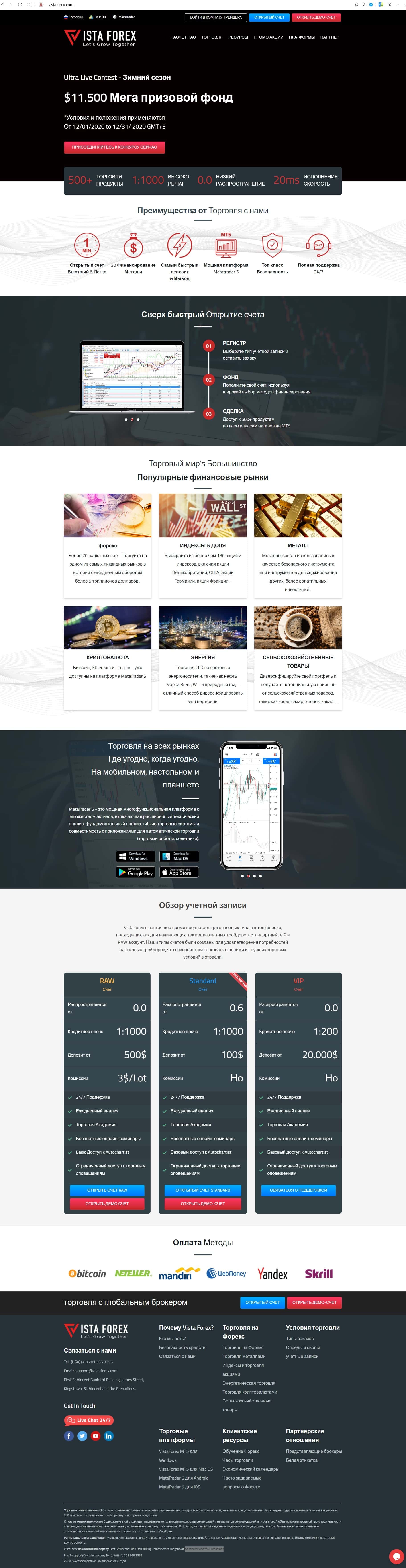 - Как выглядит главная страница сайта брокера VistaForex?