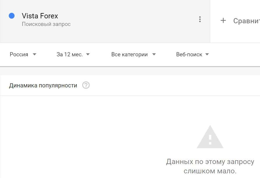 Если вбить то же название на английском языке, но с пробелом - "Vista Forex", результат поиска будет таким: очень мало данных.